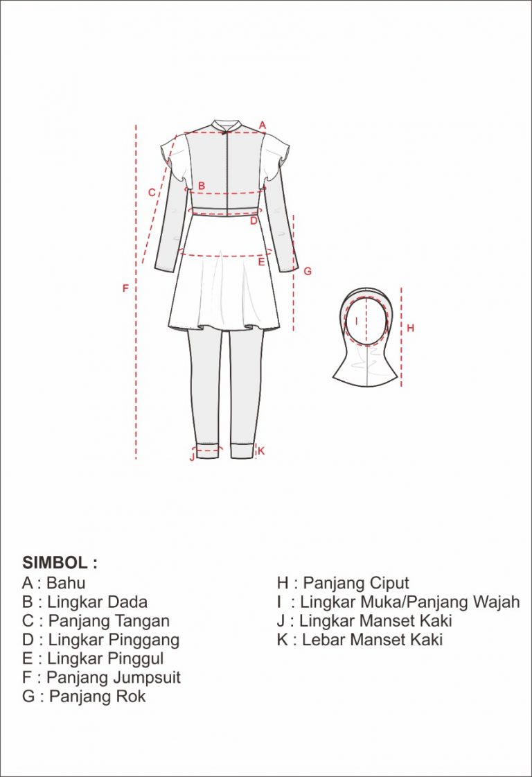 - Di dalam rok terdapat celana sepaha yang menyambung dengan baju
