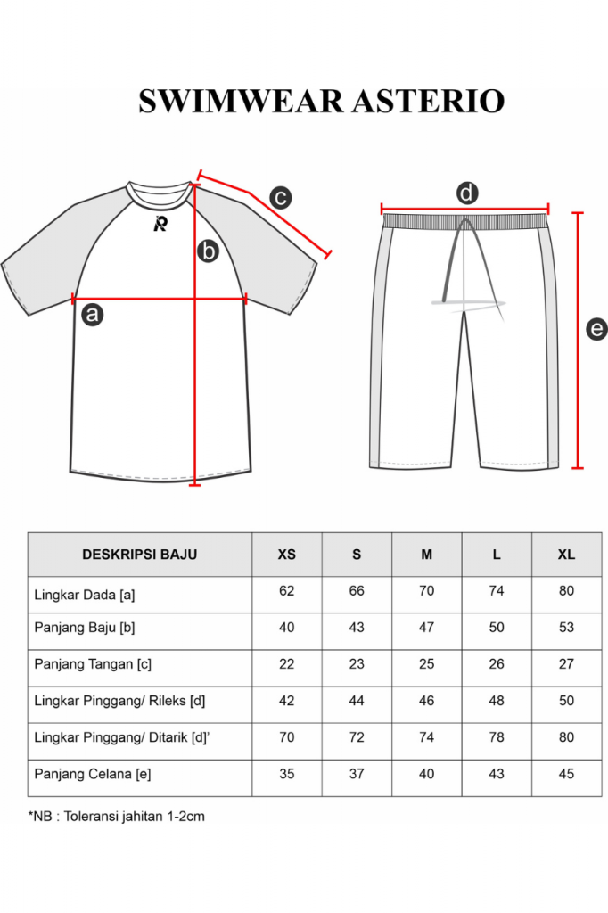 Swimwear Asterio merupakan setelan baju renang anak laki-laki, berbahan dasar Dry-co yang terdiri dari campuran polyester, spandex dan nilon yang memiliki sifat elastis, padat dan nyaman digunakan untuk aktivitas renang. Memiliki variasi warna yang menarik: Black, Maroon, Electric Blue dan Grey.