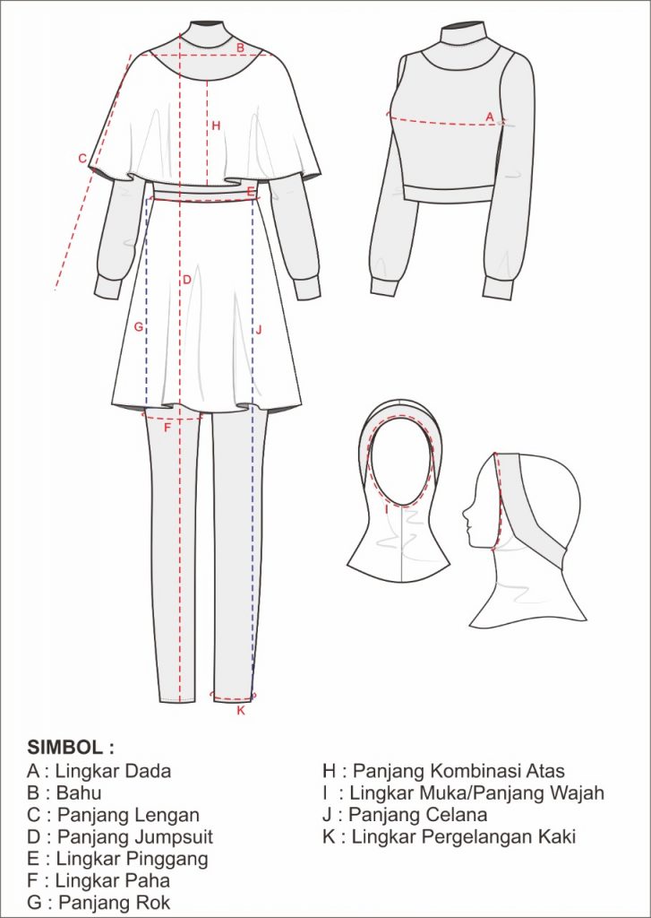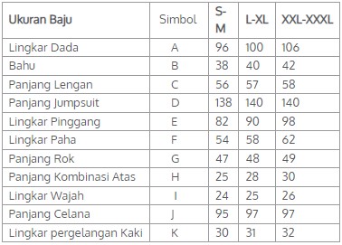 • Baju, celana tersambung (jumpsuit), kerudung terpisah dan terdapat penutup kepala